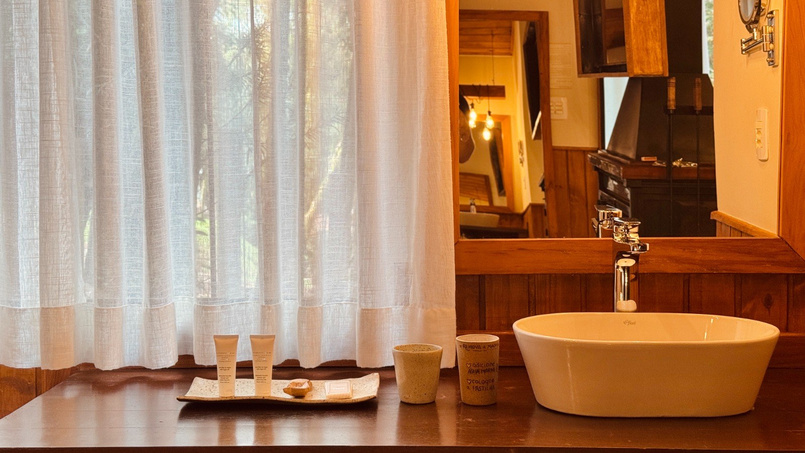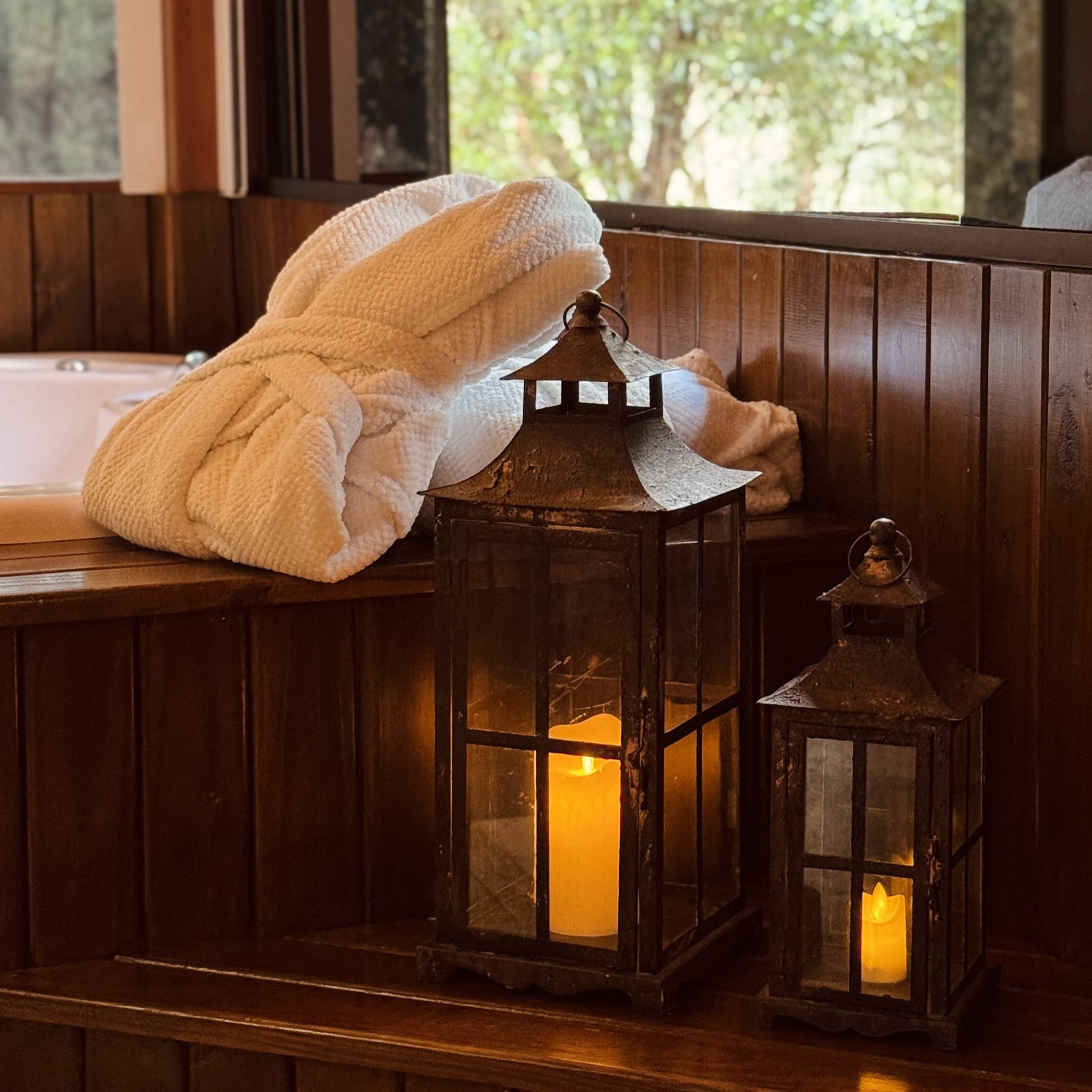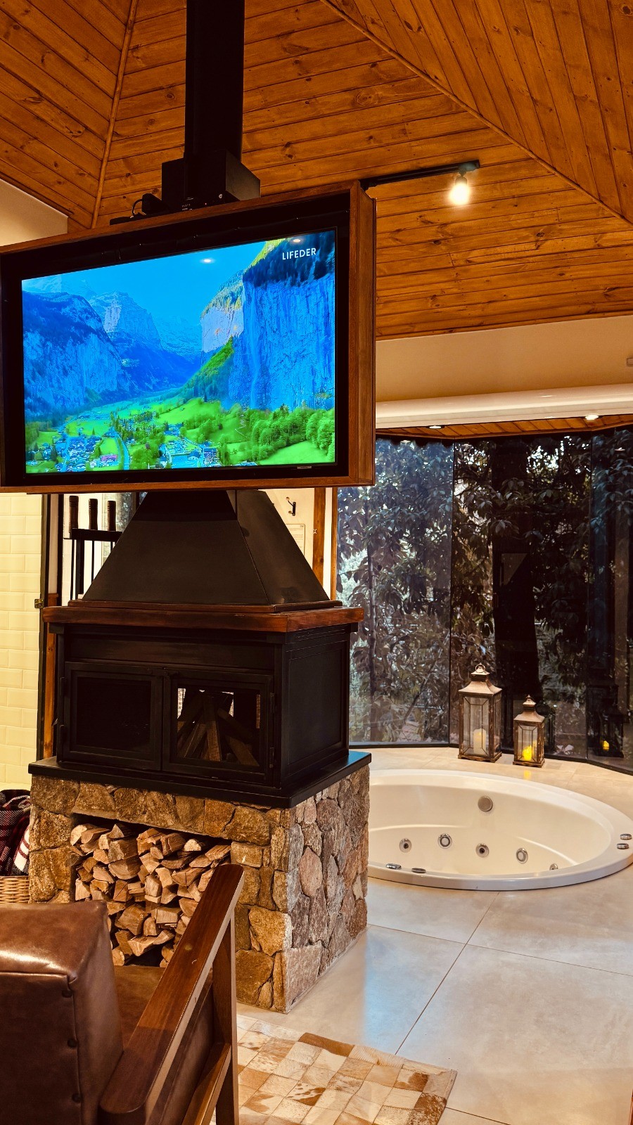 - Cortina elétrica e velas eletrônicas para um clima intimista.