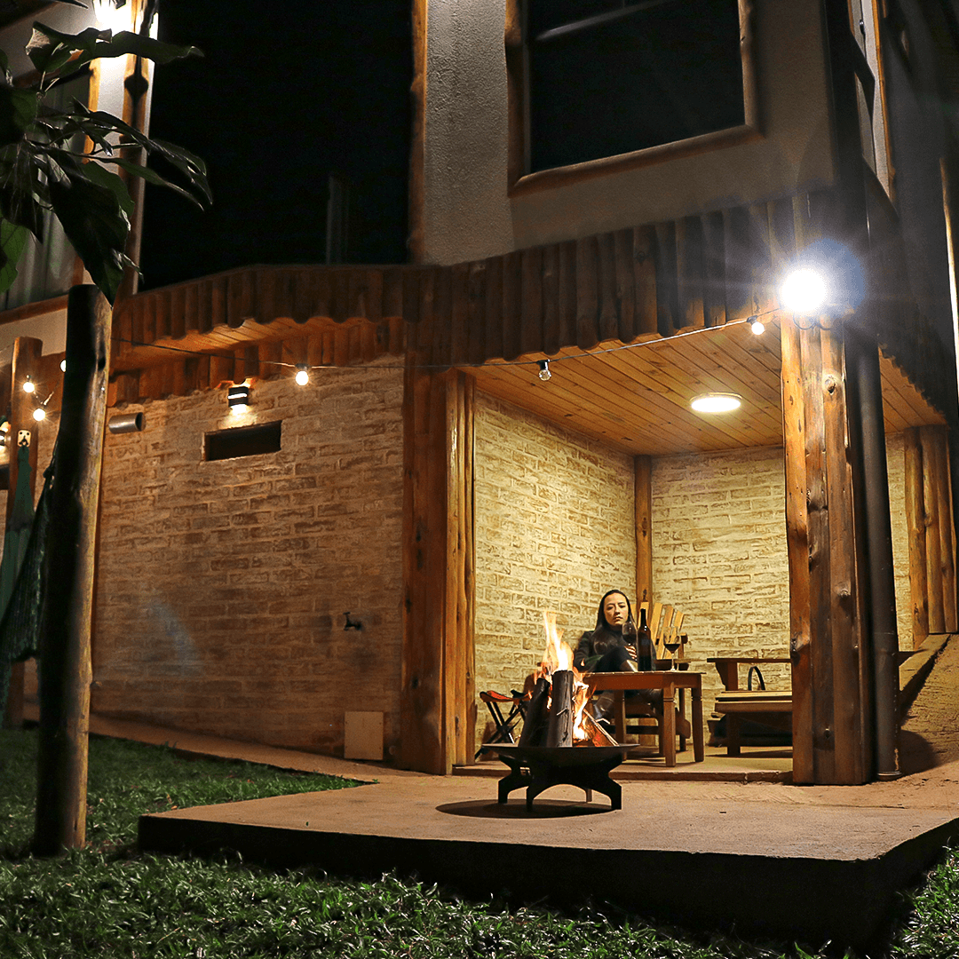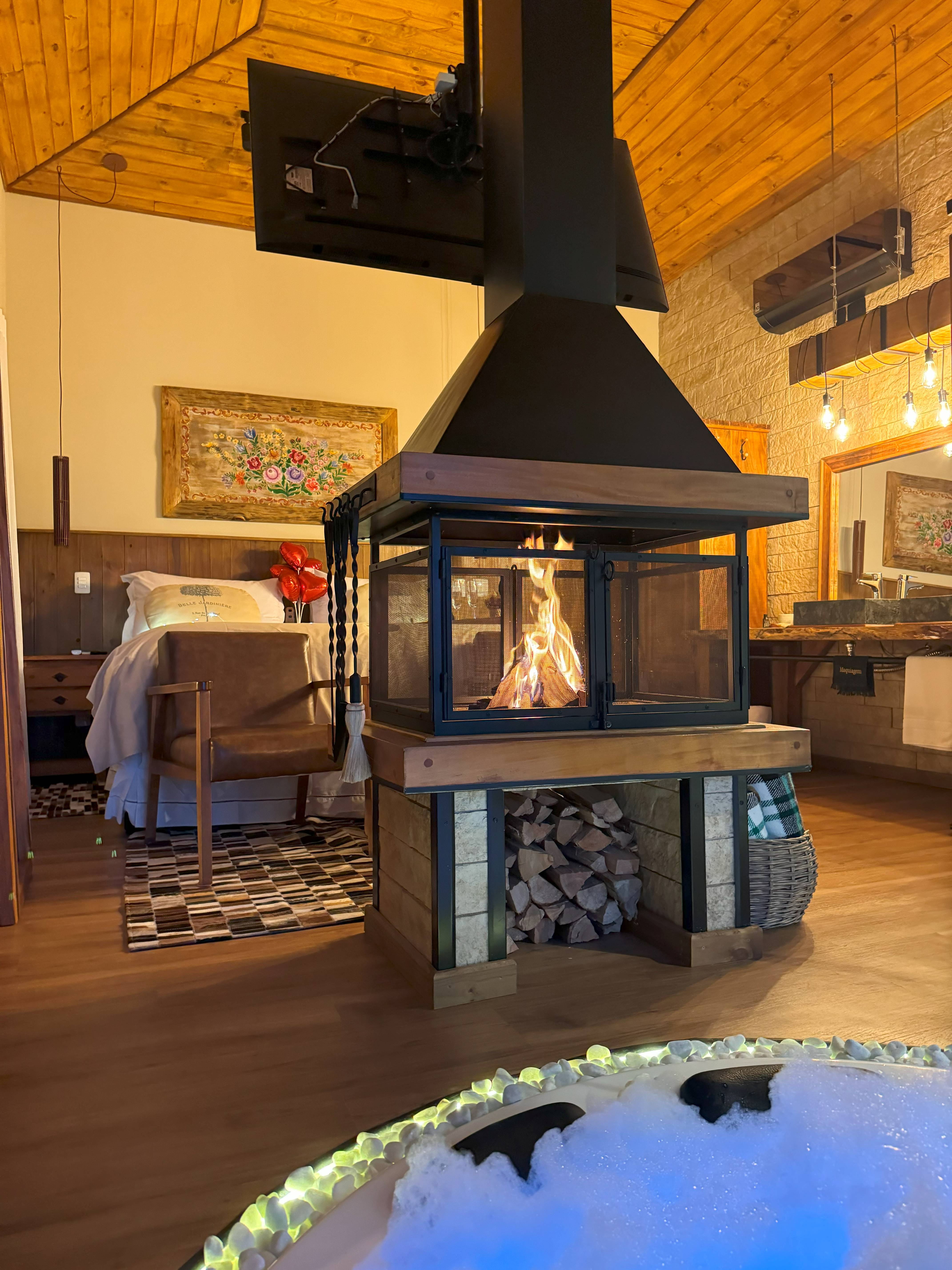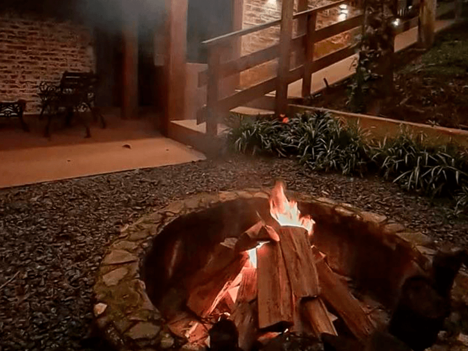 - Lareira de pedras interna e lareira externa ao ar livre