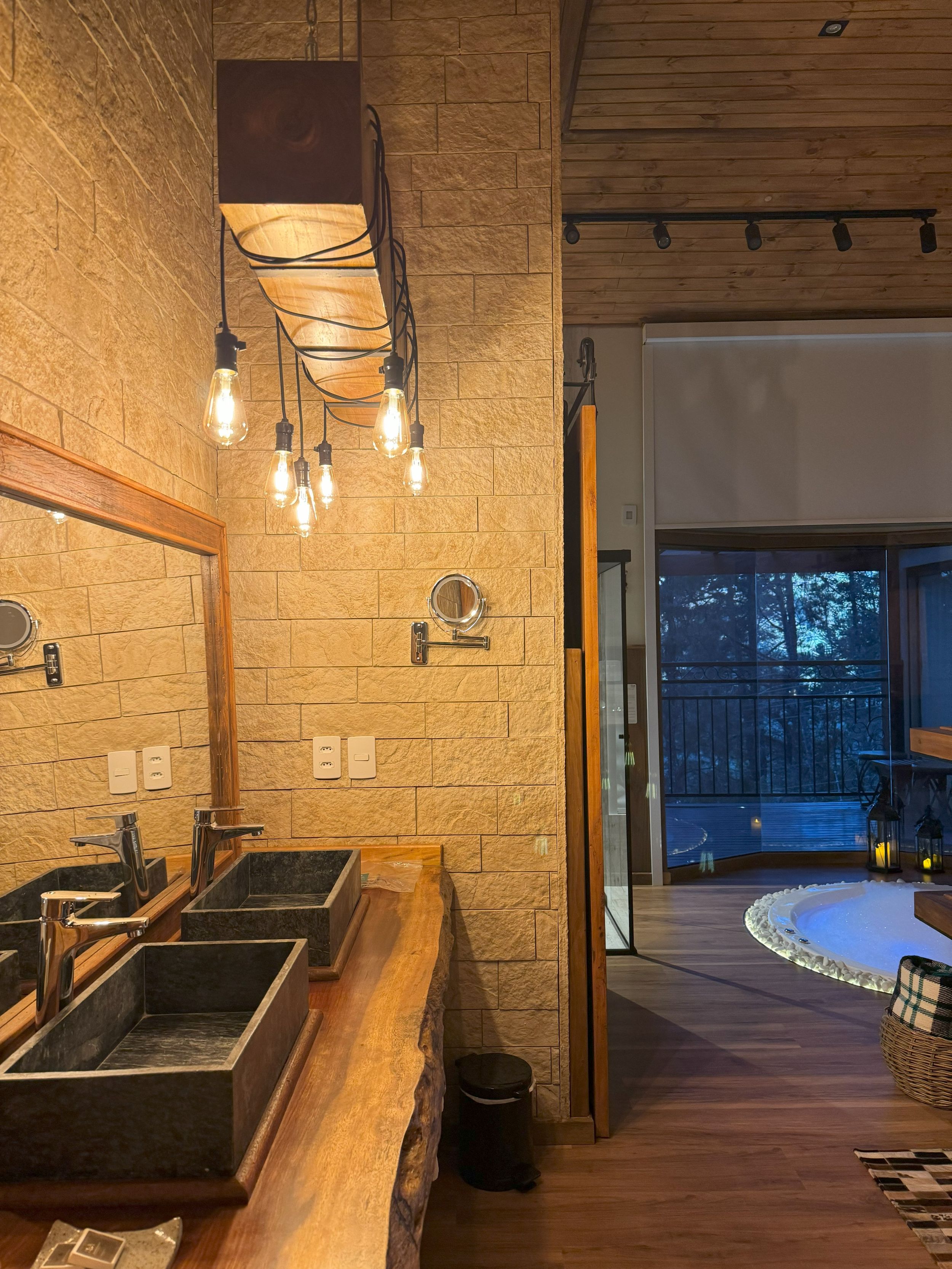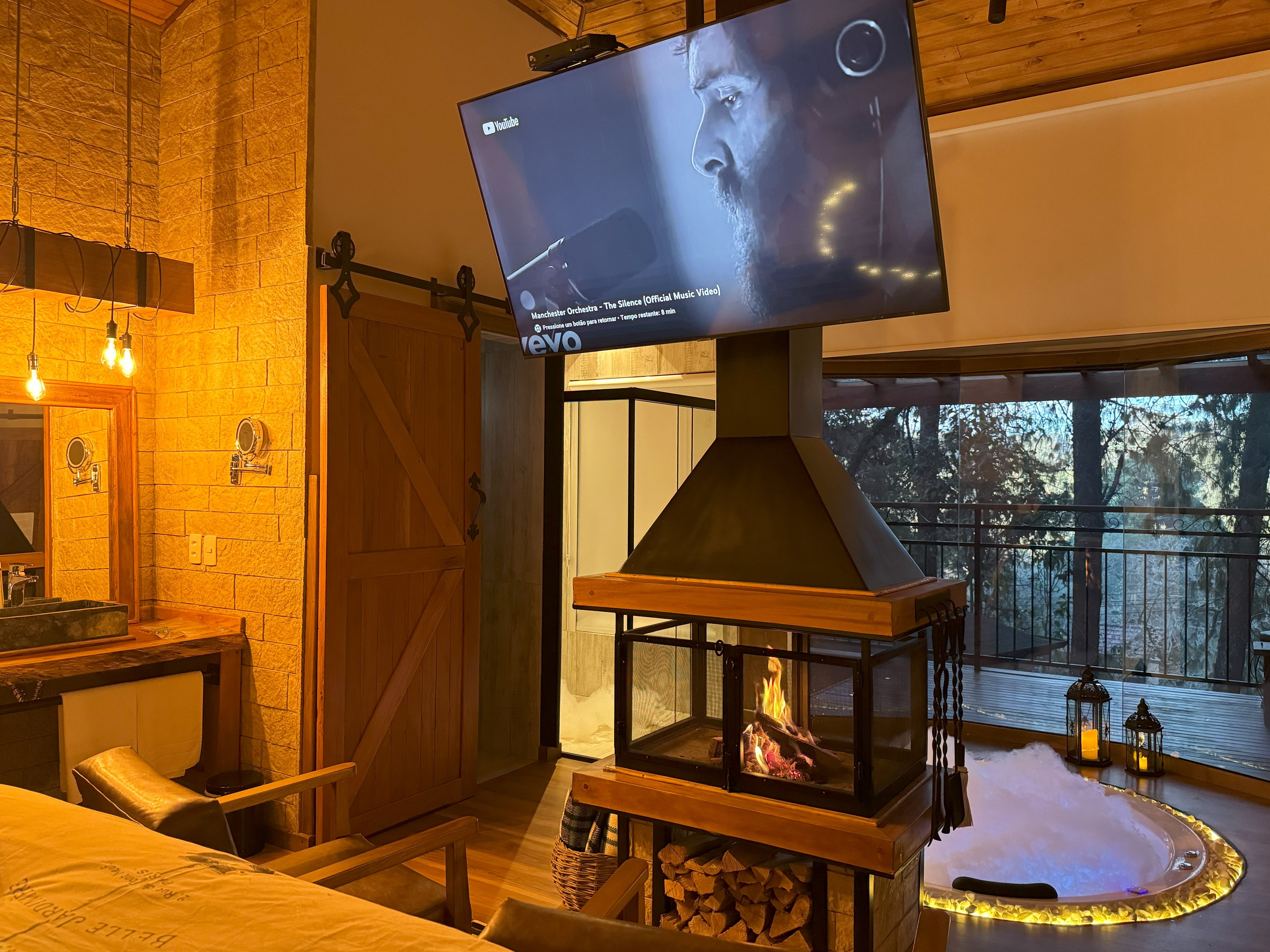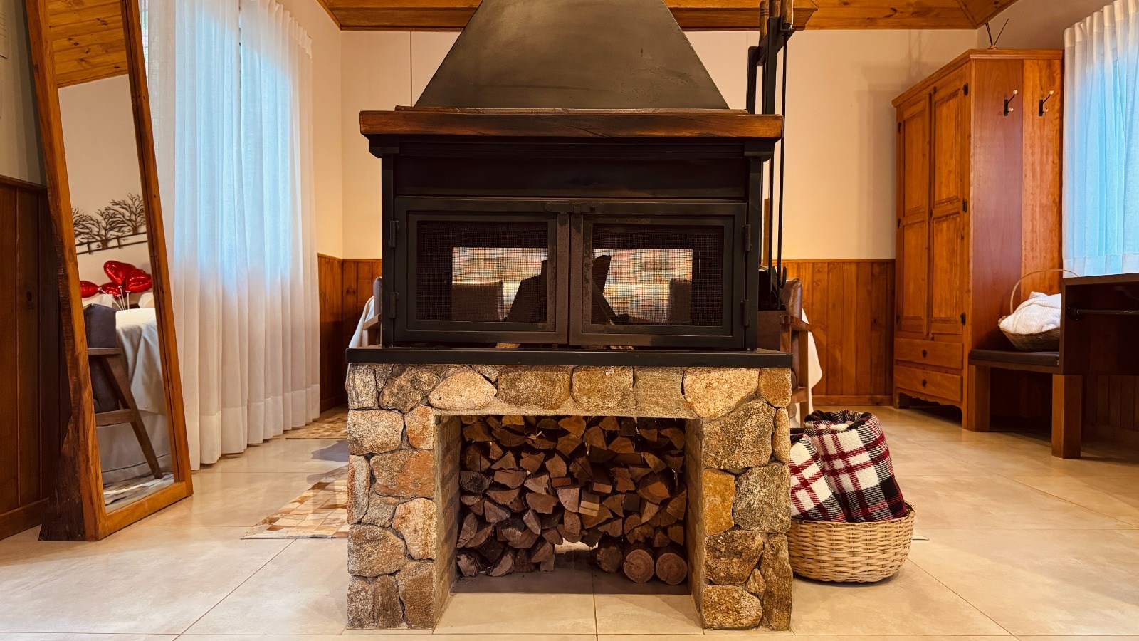 - Lareira de pedras interna e lareira externa ao ar livre