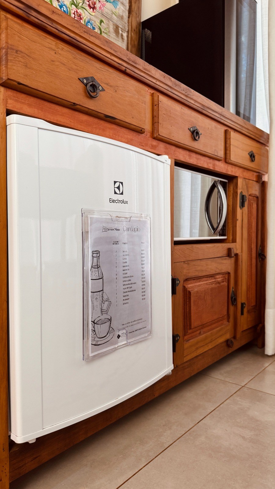 - Frigobar, micro-ondas e sanduicheira para mais praticidade.