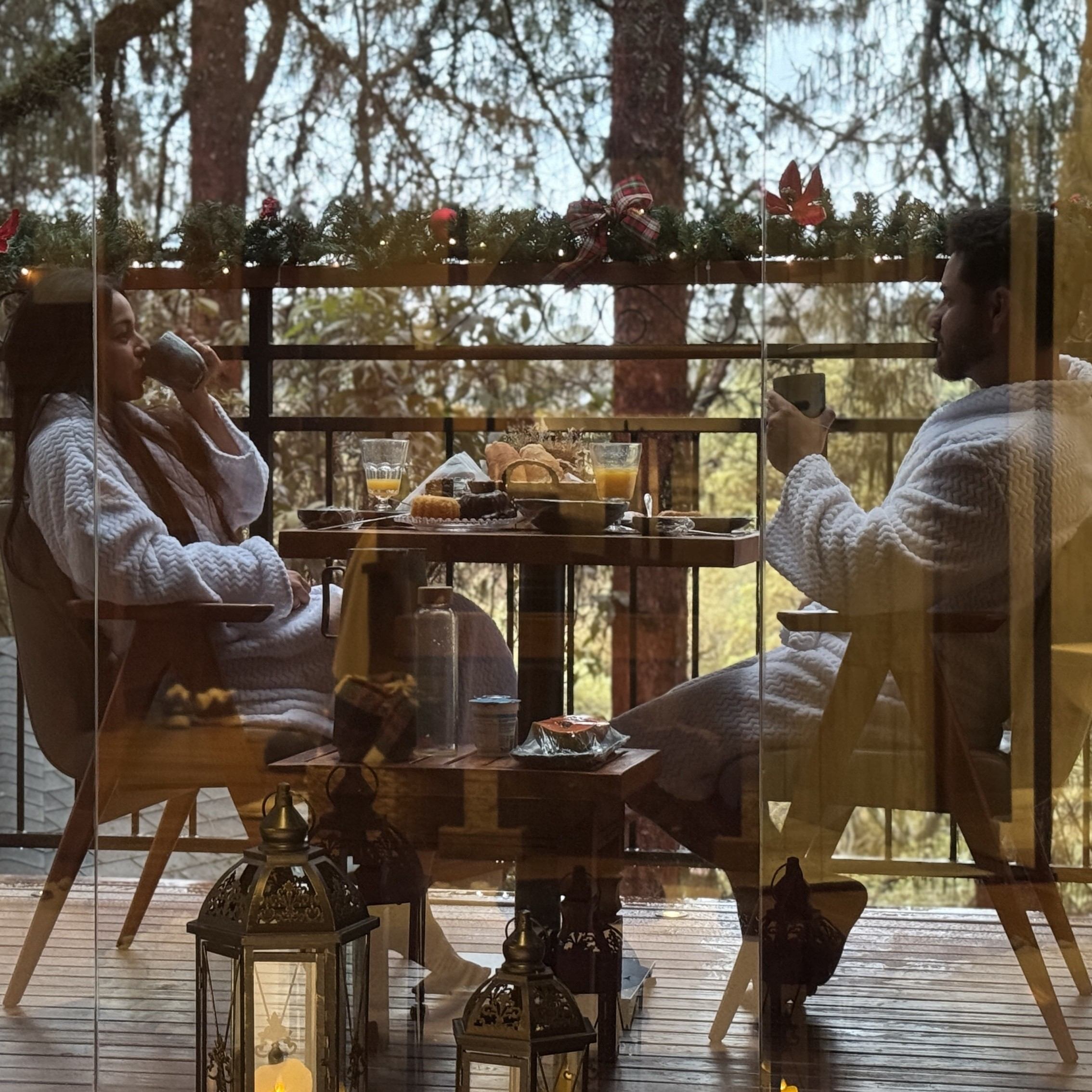 Para oferecer maior conforto e privacidade, o café da manhã é servido diretamente em sua cabana em área especial com vista, já equipada com utensílios para refeições e com máquina de café Nespresso.